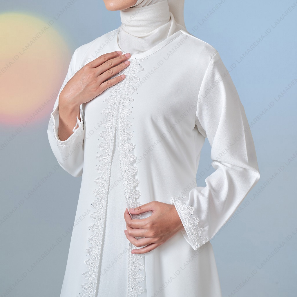 GAMIS TURKEY PUTIH MOTIF PAYET MEWAH DRESS LEBARAN UMROH WUDHU LM 126
