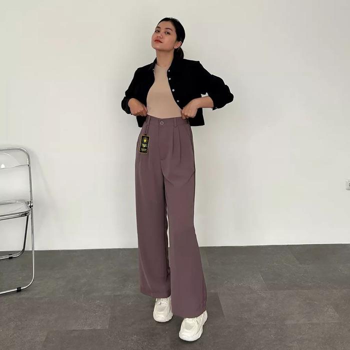 Raden | Celana Loose Pants Trousers Wanita - Kulot Crinkle Highwaist Jumbo - Hitam, Standar
