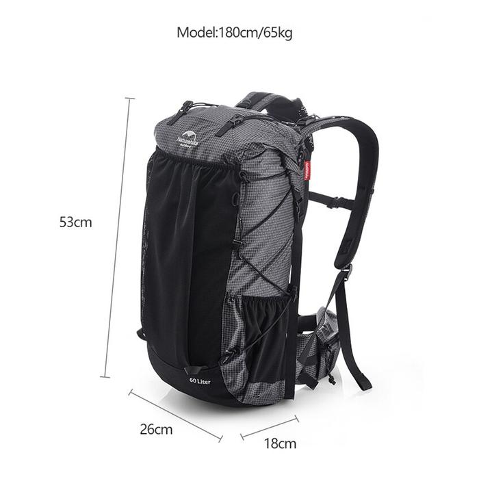 Carrier Naturehike Rock Nh19Bp095 65L Tas Keril Gunung Ultralight - Black, Ready