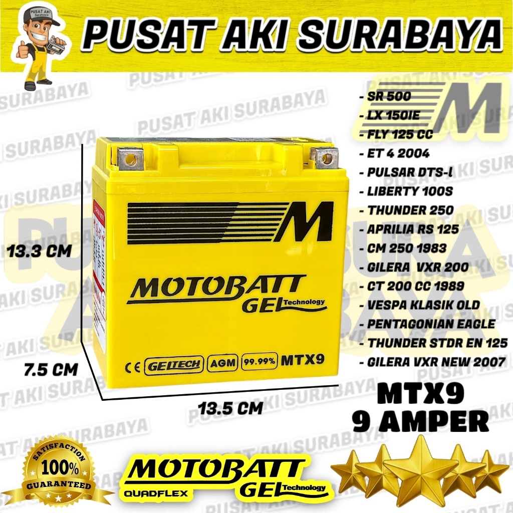 ACCU MOTOR VESPA OLD MOTOBATT MTX9 AKI GEL BERKUALITAS SIAP PAKAI UNTUK MOTOR LIBERTY 100S PULSAR DTS-I YB7A