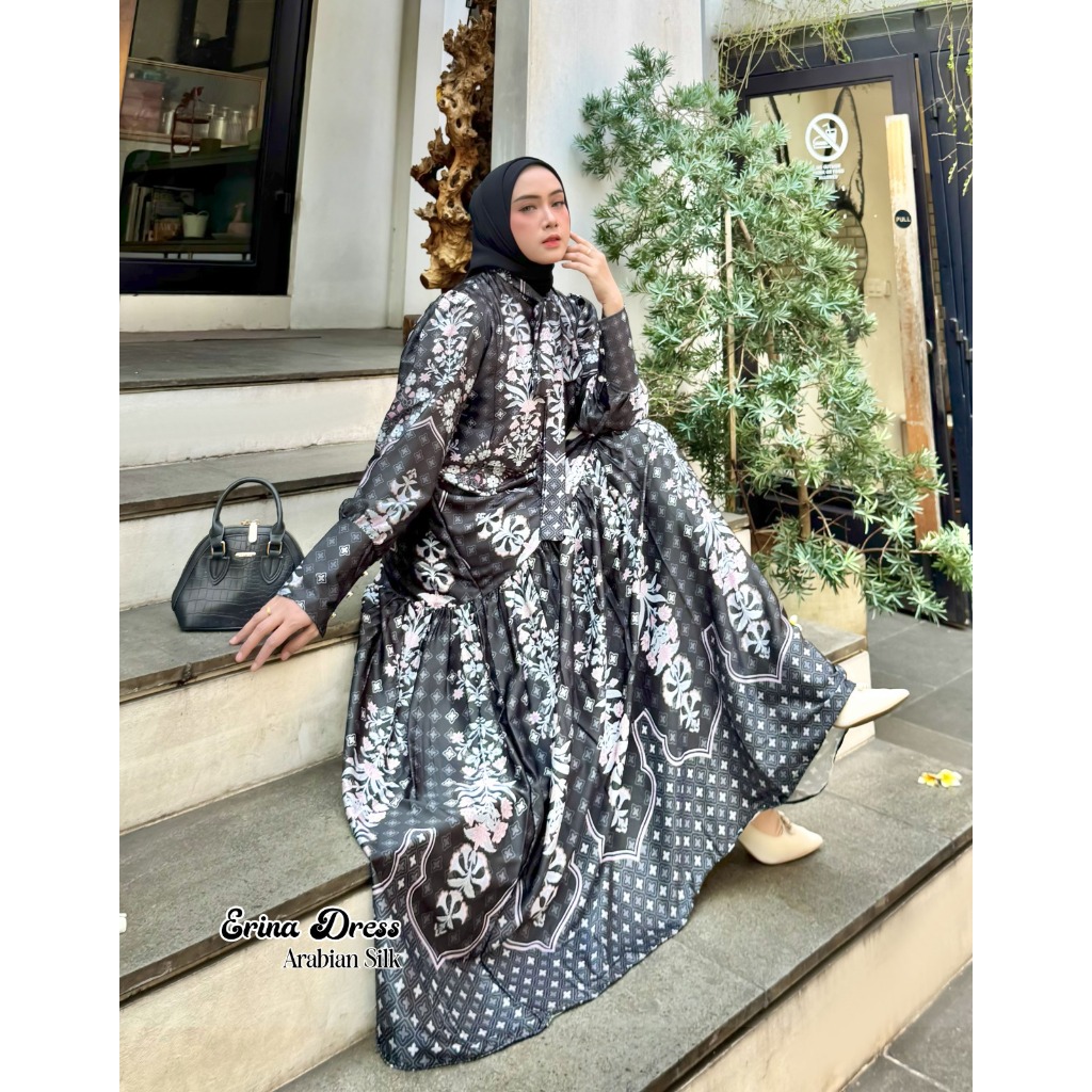 ERINA (Tanpa Hijab) Baju Gamis Dress Model Terbaru 2025 Bahan Arabian Silk Mewah Kekinian