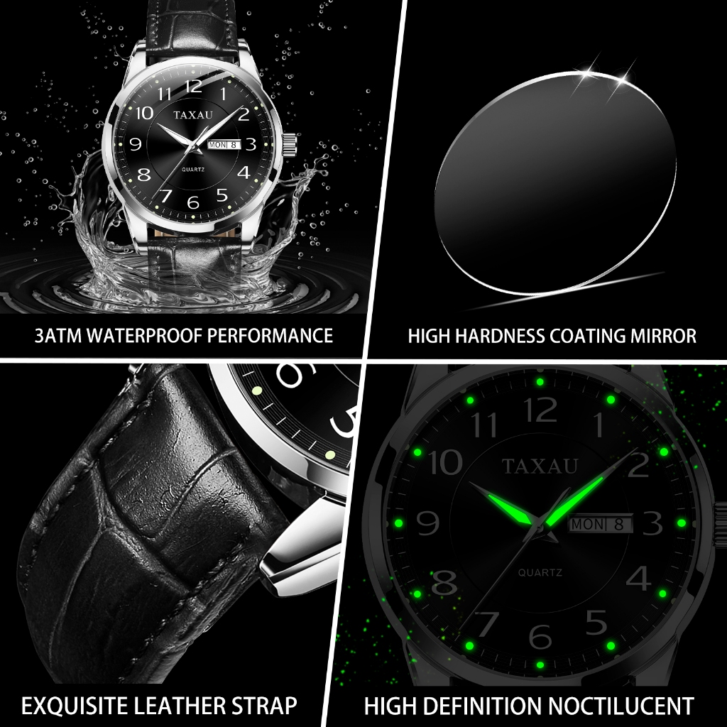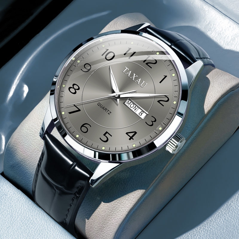 TAXAU Jam Tangan Pria Kulit Anti Air Original Cowok Kalender Analog Arloji Bisnis Fashion Men Watches 8405
