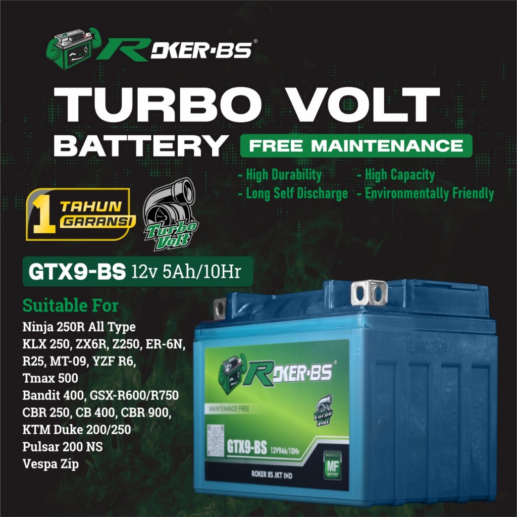 aki roker BS ninja 250 klx 250 ZX6R tmax ktm duke R25 Z250 CBR 400 turbo volt GTX9-BS