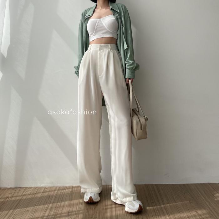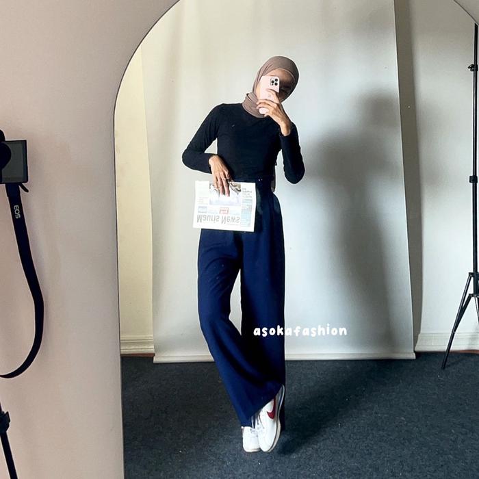 Asoka 999 Loose Pants Trousers Wanita - Celana Kulot Wanita Kekinian - Celana Kantor/ Polyester - Hitam, S-M All Size