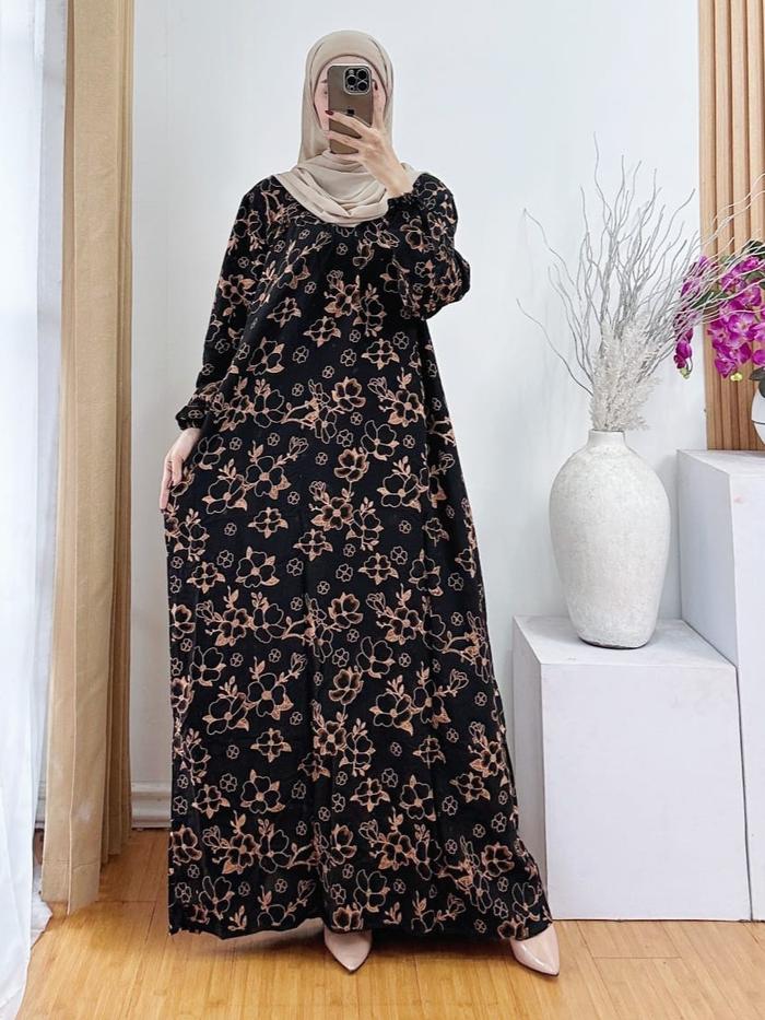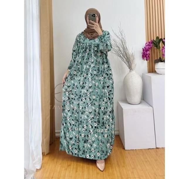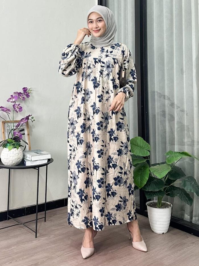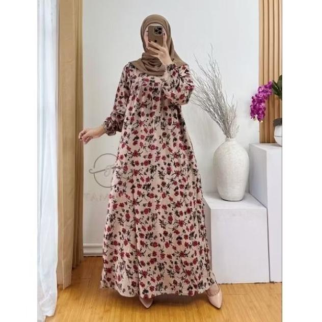 Tamala Gamis Rayon Premium Motif Bunga Flower Ukuran Jumbo Muslim Wanita Midi Dress Dewasa Katun Tunik - Denada