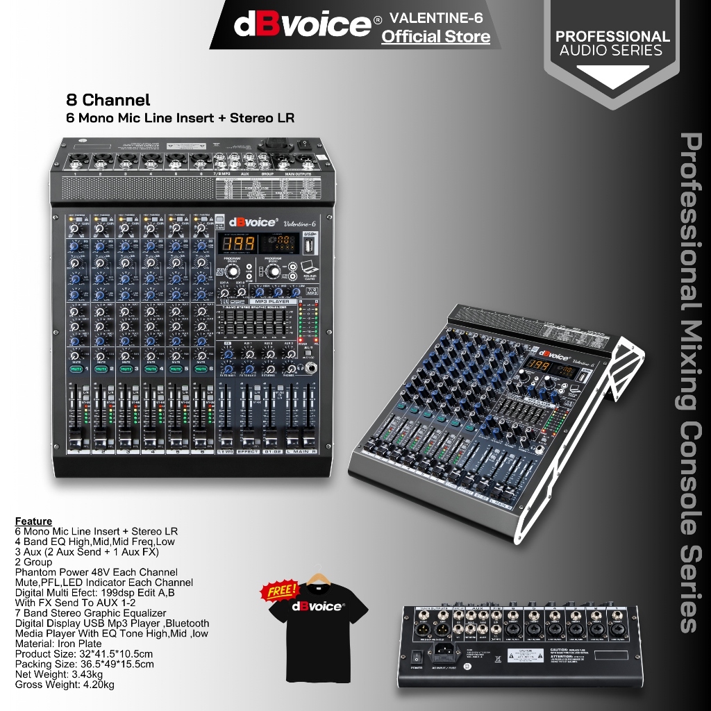 Professional Analog Mixer 6channel 199Dsp Effect dBvoice VALENTINE-6