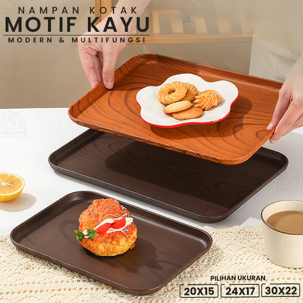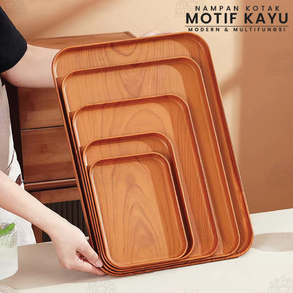 Nampan Saji Kotak Tray Plastik PP Motif Kayu Makanan Minuman Multifungsi Murah Gratis Ongkir