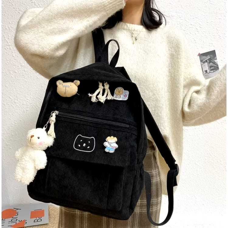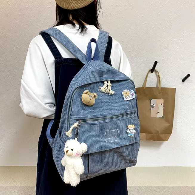 Tas Ransel Sekolah Corduroy Motif Ber Korean Backpack Wanita Anak Perempuan Tas Cewe Cantik