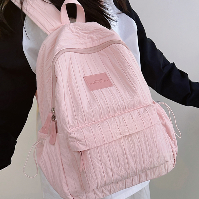 HT-Tas Ransel Santai Wanita Tas Sekolah Remaja Tas Laptop Tas Nilon Bergaris Kapasitas Besar