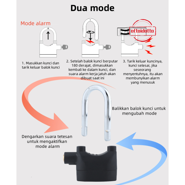OTTOID Kunci Alarm Anti Pencurian Sepeda Motor Gembok Pagar Gembok Anti Maling Suara Alarm 110 Desibel Gembok Motor