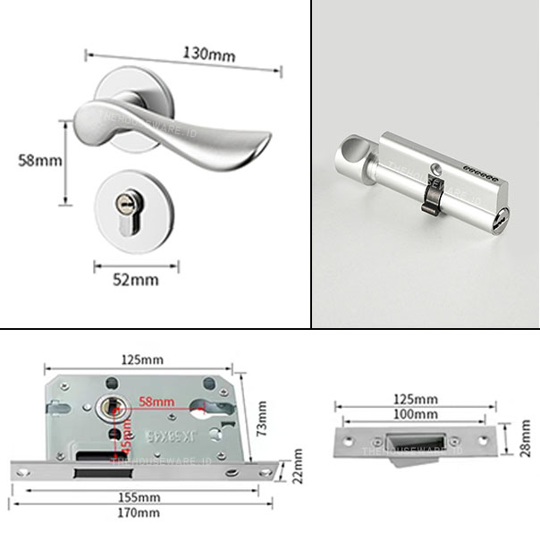 Kunci Pintu Full Handle Set Gagang Pintu Lengkung Putih Silver Premium