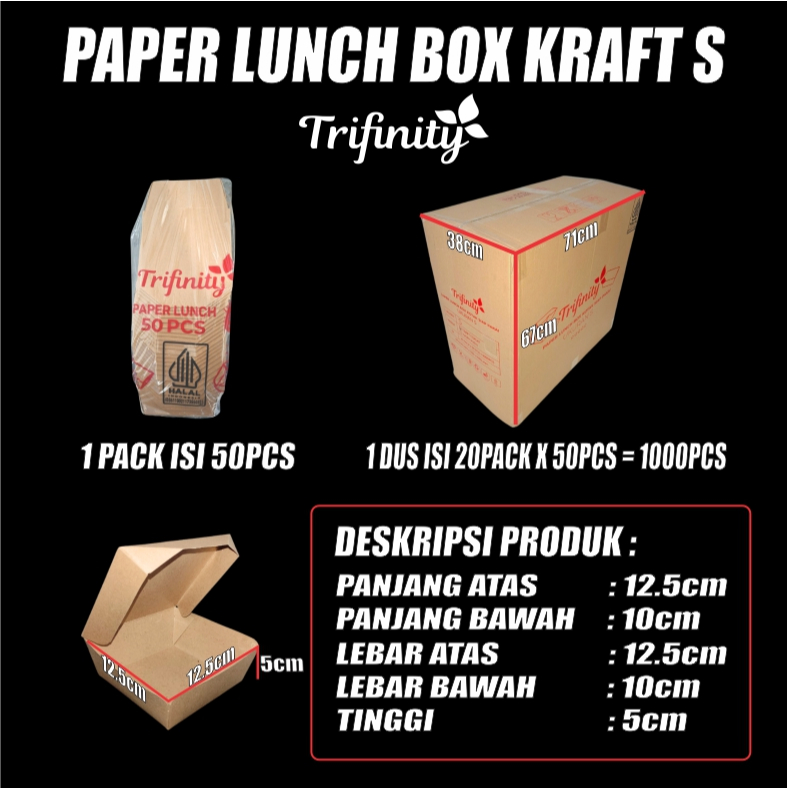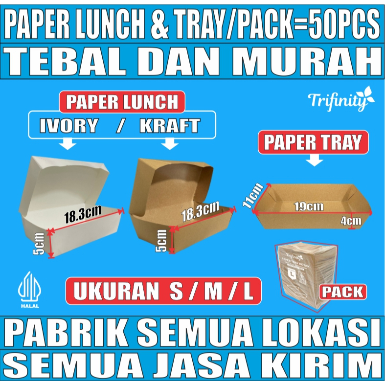 Paper Lunch Box Food Tray Siap Pakai Tebal 28gr Kotak Makan Kertas S M L Putih Kraft Coklat JSP Murah Gratis Ongkir