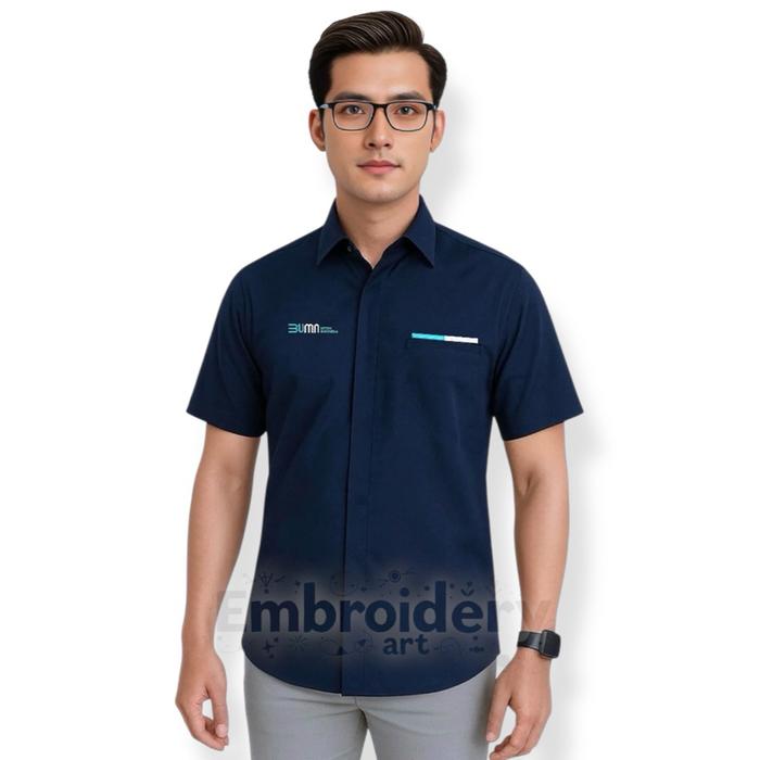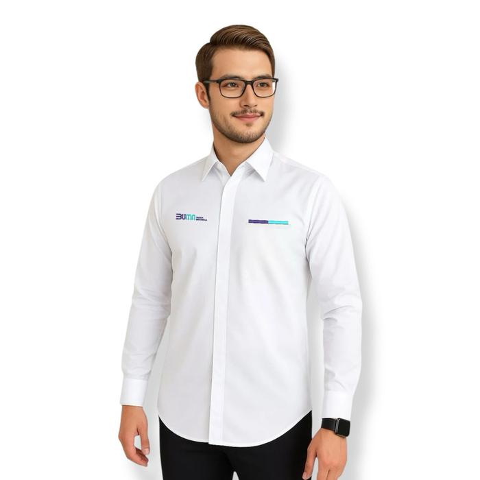 Kemeja Seragam Bumn Untuk Indonesia Lis Full Bordir Komputer Navy Putih Lengan Panjang - Pendek Pria/Wanita - Putih Panj