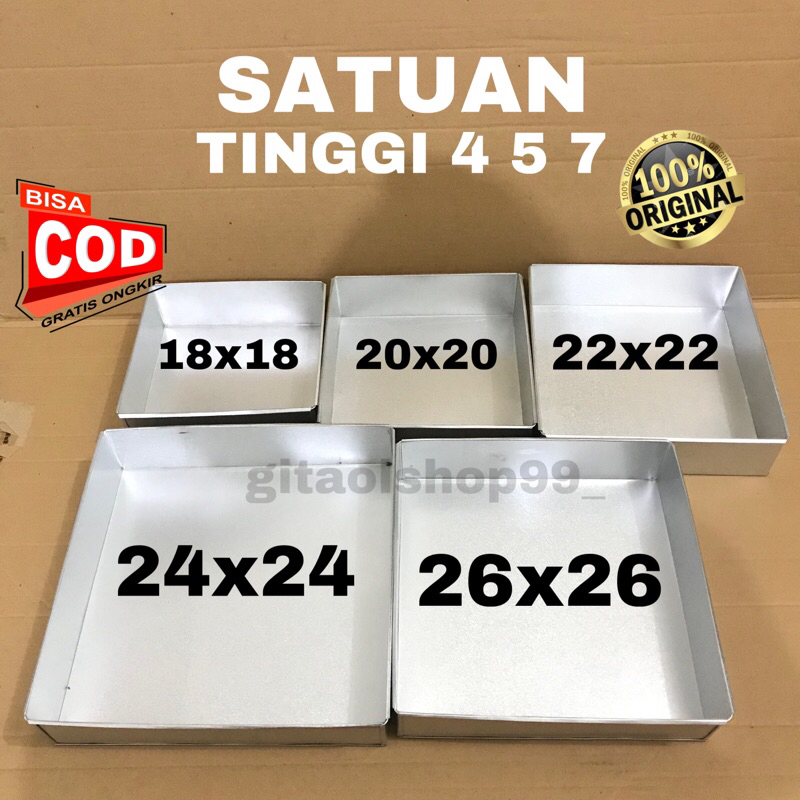 Loyang Kotak Persegi 18x18x7 20x20x7 22x22x7 Tinggi 4 5 7 CM Loyang Bolu Lapis Legit Satuan Cetakan Kue Brownis Brownies