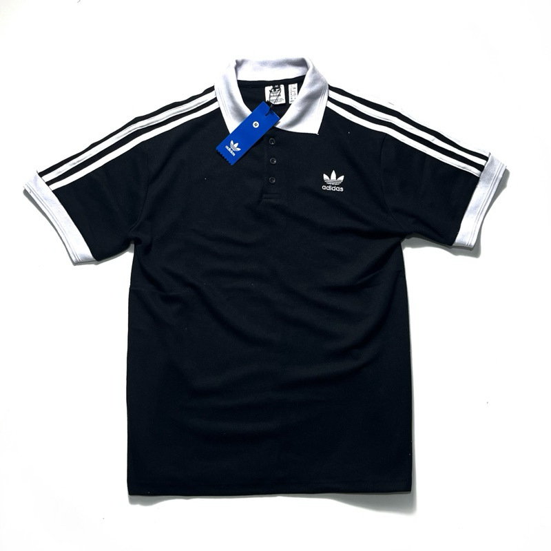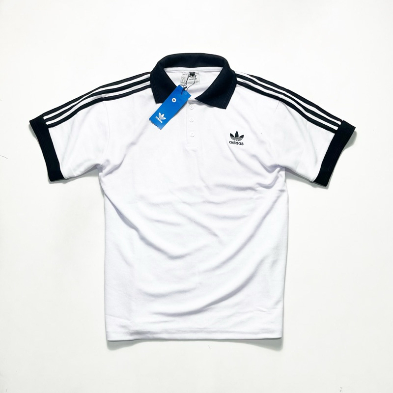 Baju Kerah Kaos Wangki Polo Shirt Adds List Hitam Warna Putih Unisex Full Tag