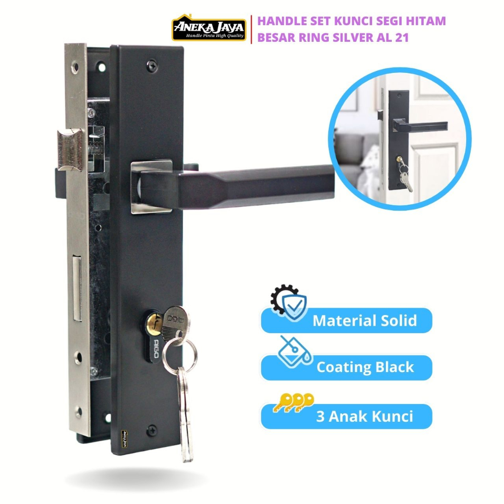 Kunci Pintu Rumah Utama Kamar Hitam Ring Silver Ukuran Besar Tanggung 25 cm 20 Gagang Minimalis Black