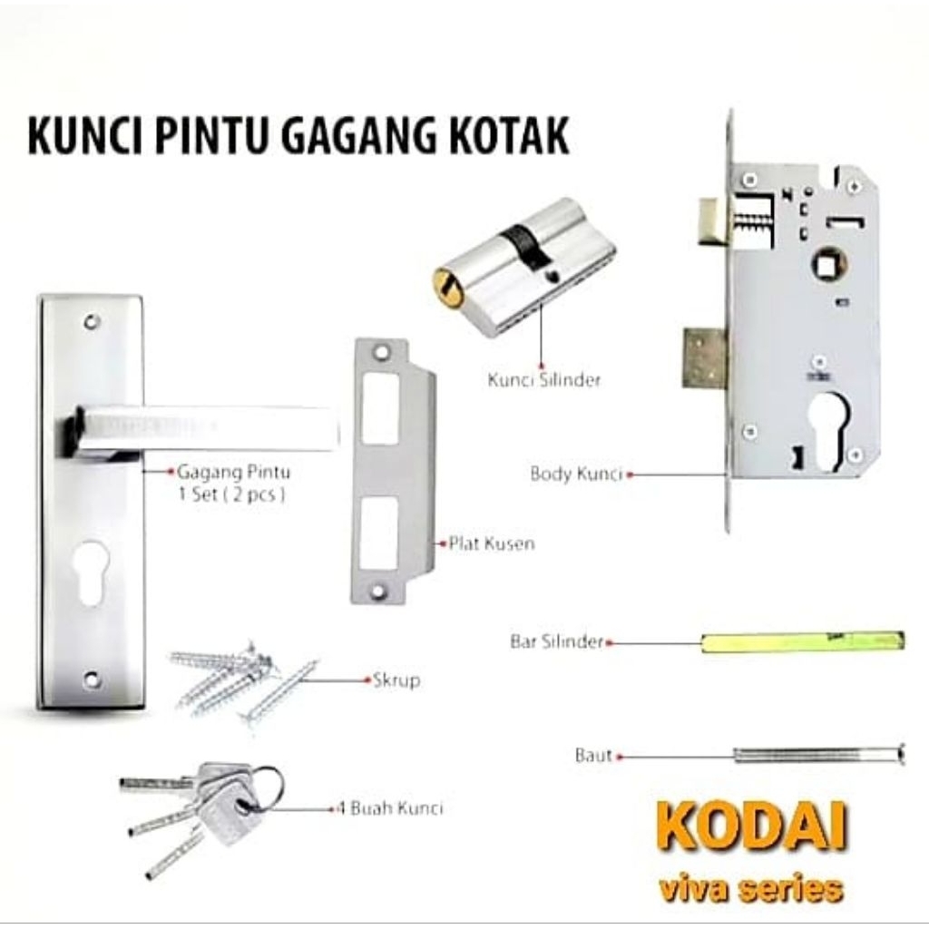 Kunci Pintu Rumah Komplit Ukuran Tanggung 20cm KODAI Viva Series Handle Set Komplit Ukuran Medium 20cm