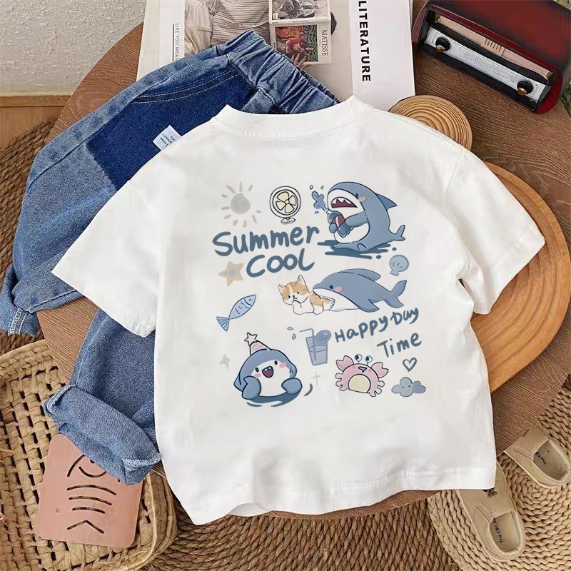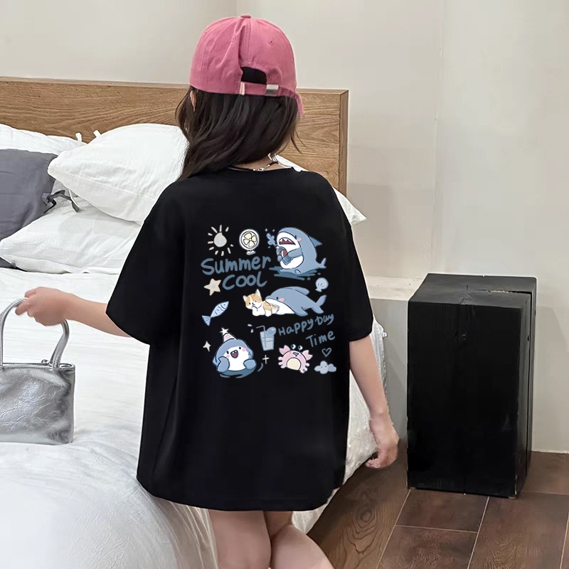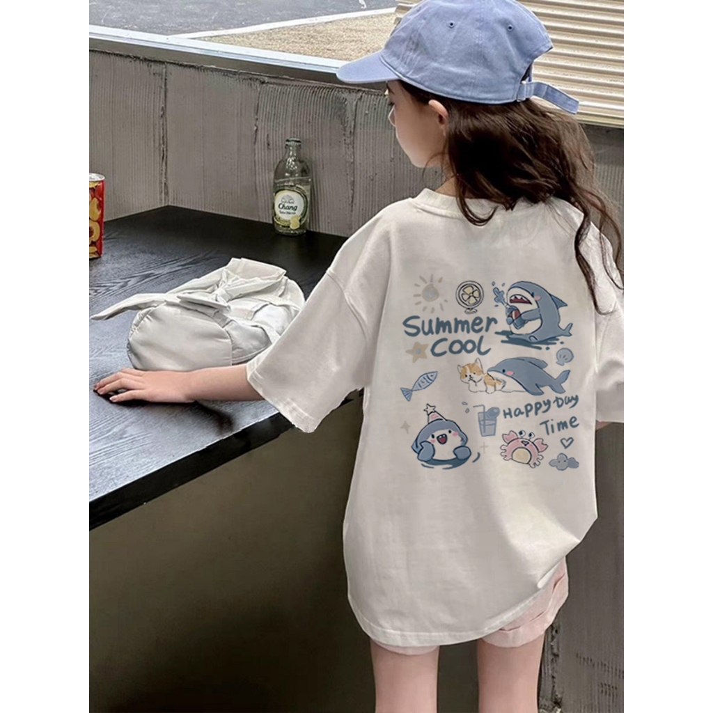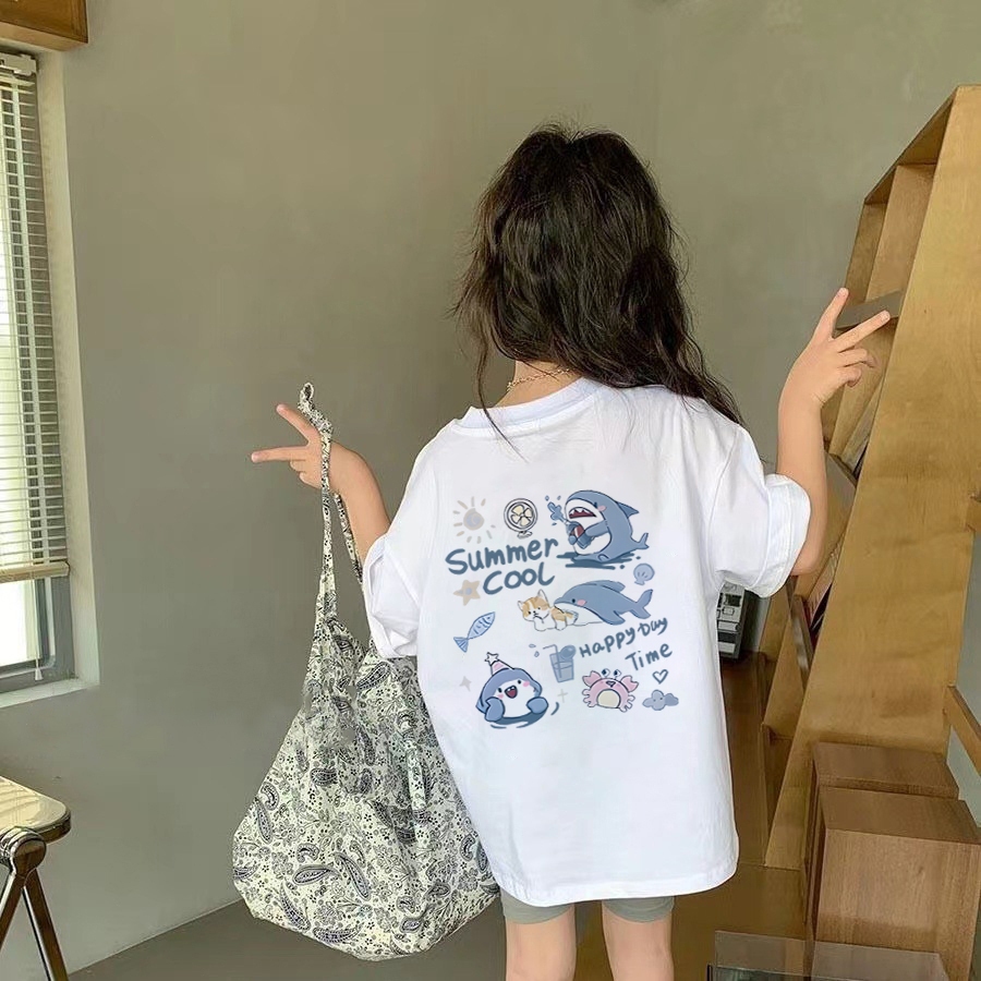 Kaos anakcewek 10 tahun import2-12 Tahunkaos Cetakan Bayi Hiu yang lucukorea style premium baju atasanKaos anak perempua