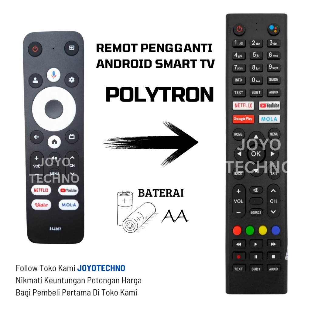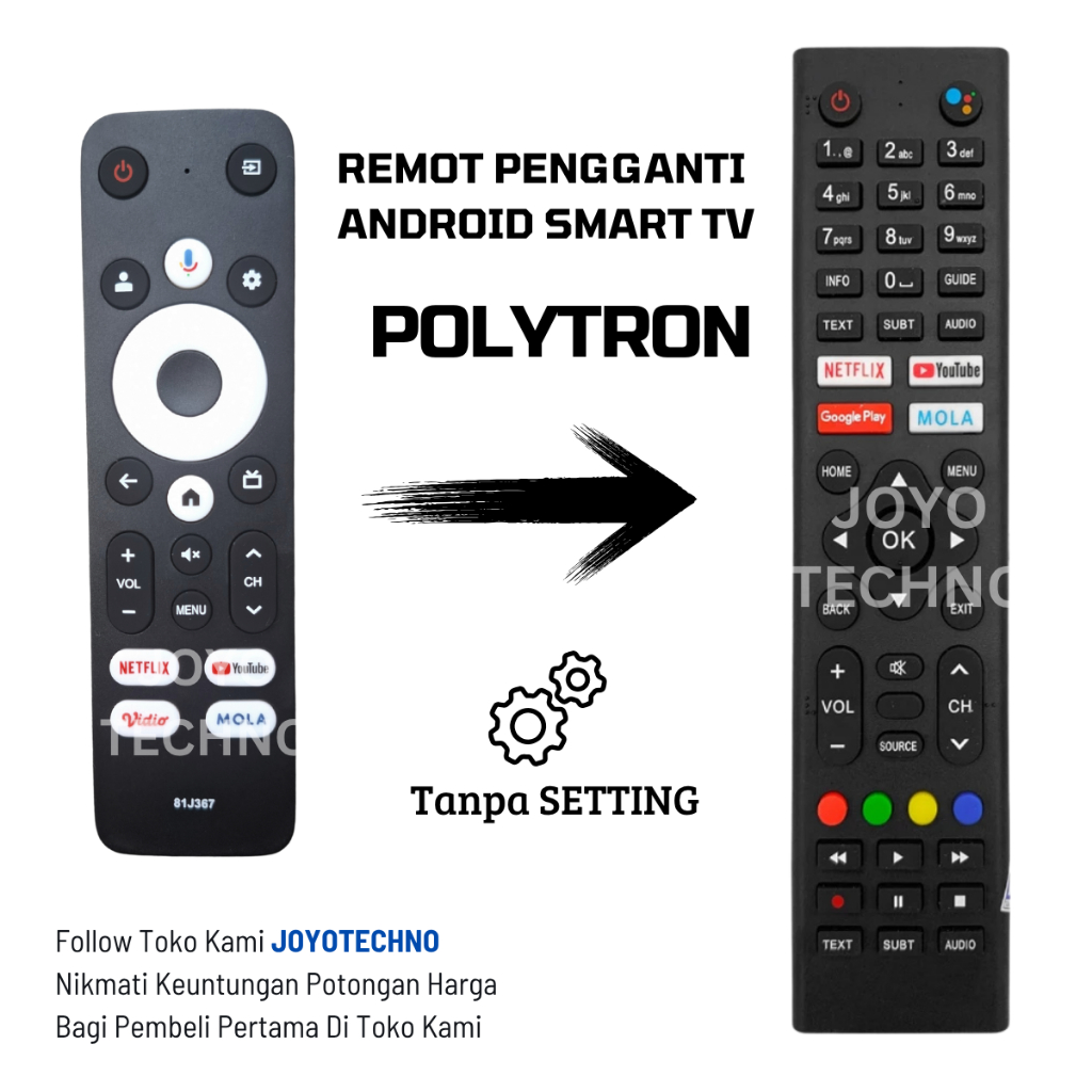 Remot Pengganti Smart TV Polytron 81J367 / Remote Smart TV Polytron Mola Android LED