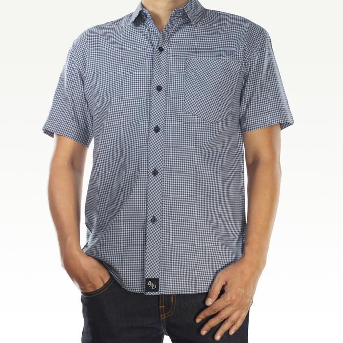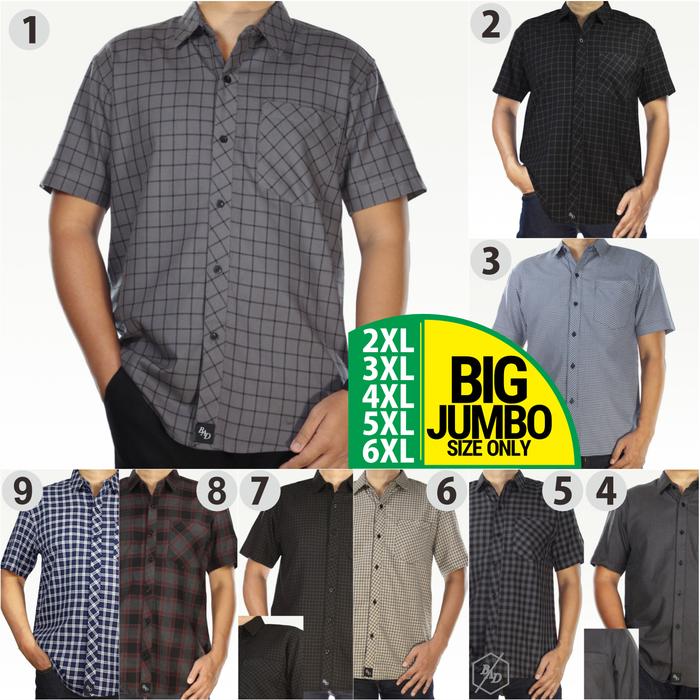 Kemeja Pendek Kotak Pria Big Size Jumbo Kerja Hem Motif Cowok Casual - Hitam, 2Xl