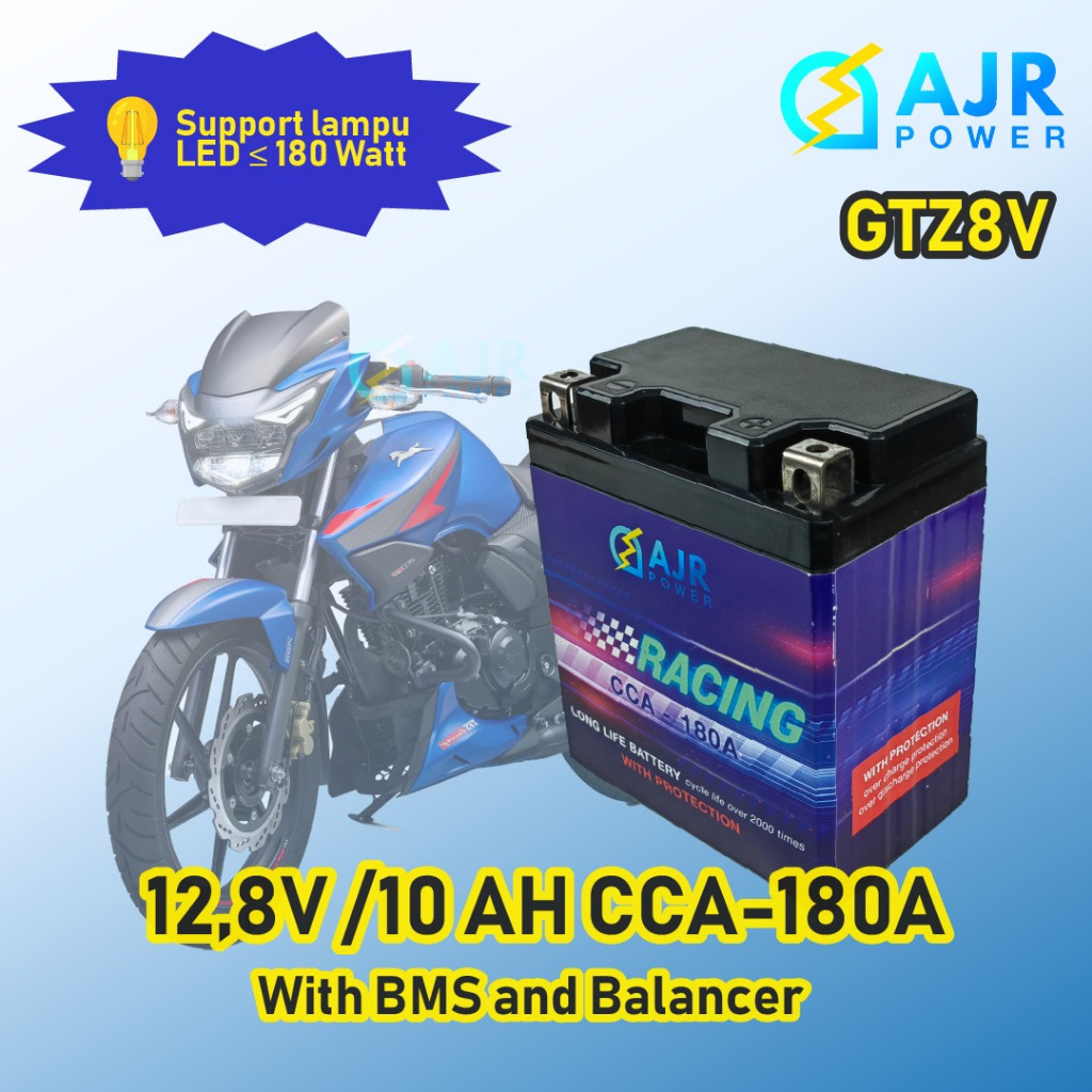 AKI ACCU Lithium LiFePo4 GTZ8V AJR POWER XMAX R25 12V 12,8V 10AH dgn BMS dan BALANCER STARTER CCA 180A