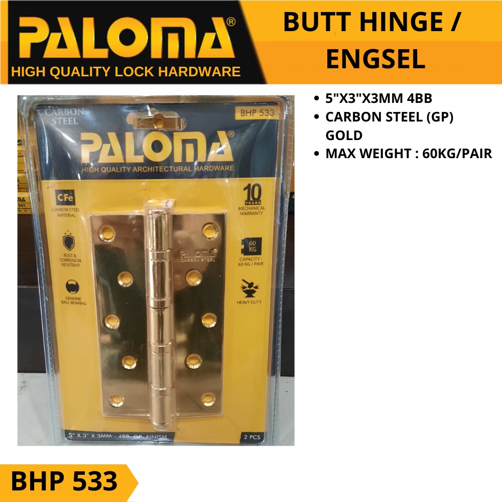 PALOMA BHP 533 BUTT HINGE ENGSEL PINTU STEEL 5"X3"X3MM 4BB GP