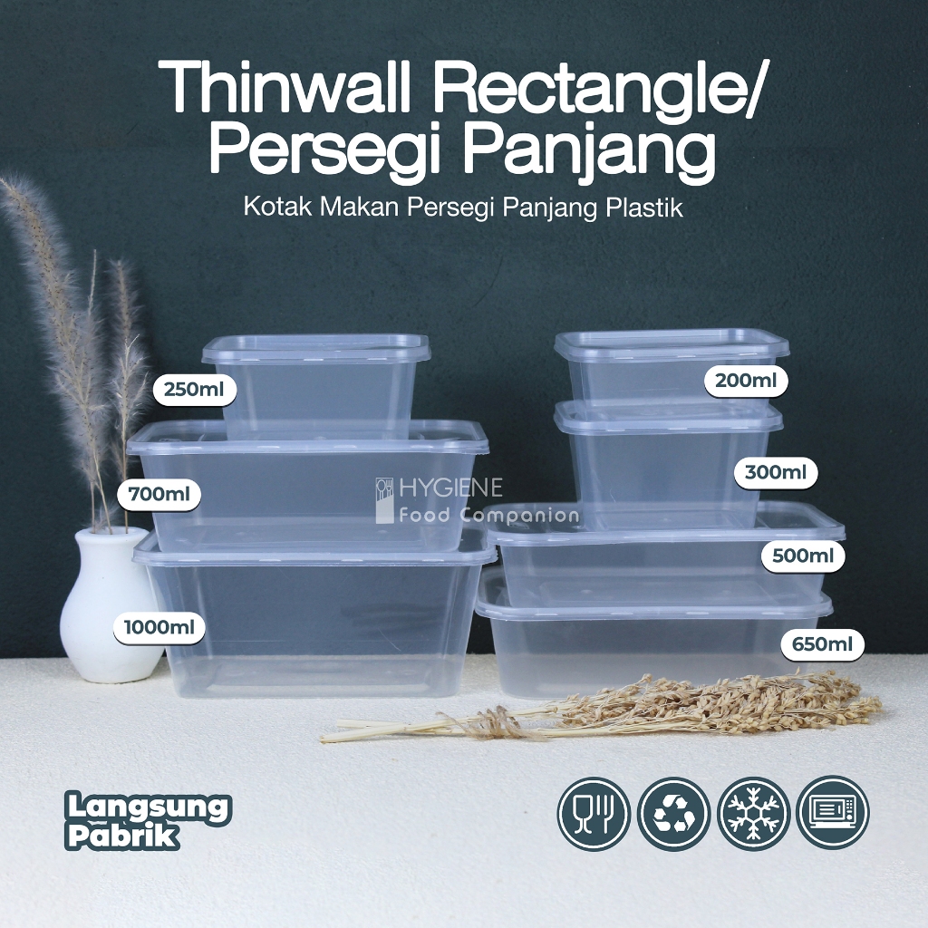 Thinwall Rectangle / Kotak Makan Plastik 200ml 250ml 300ml 500ml 650ml 750ml 1000ml [ISI 25PCS] Murah Gratis Ongkir