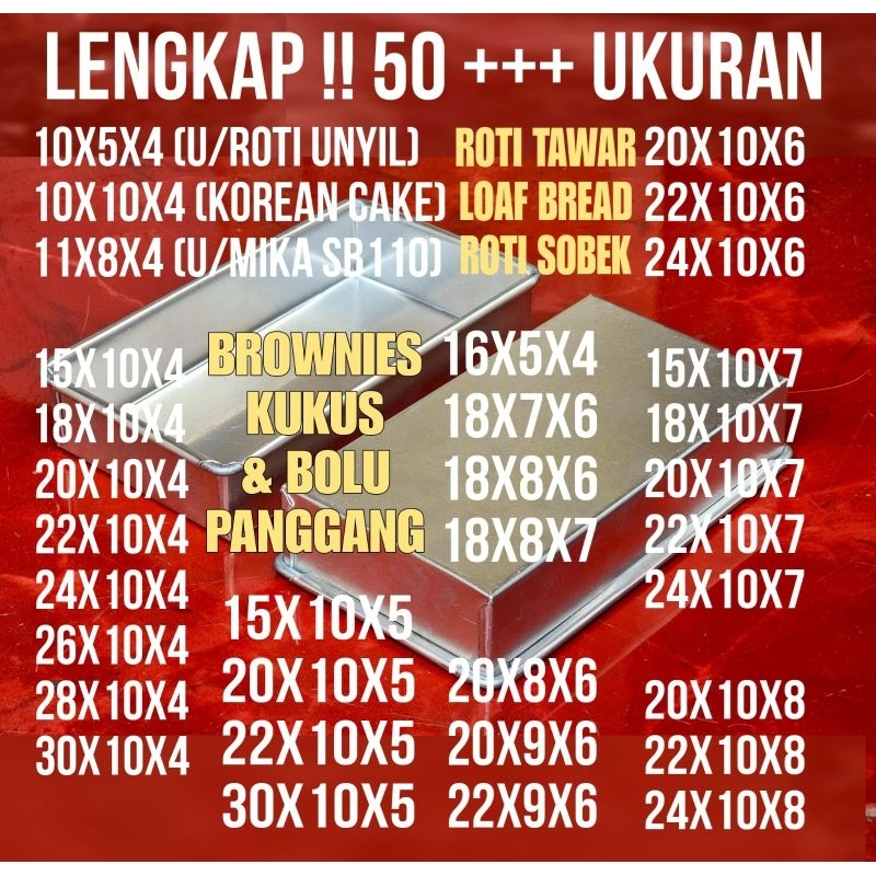 Loyang Brownies Roti Sobek Tawar uk 15 18 20 22 24 / 20x10 22x10 24x10 18x8 Loyang Brownis Tinggi 4cm 5cm 6cm 7cm 8cm Lo