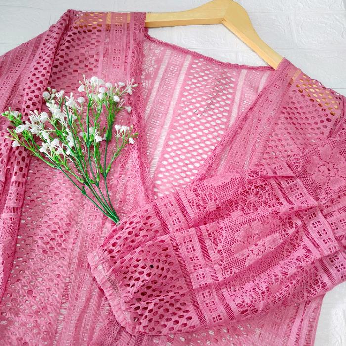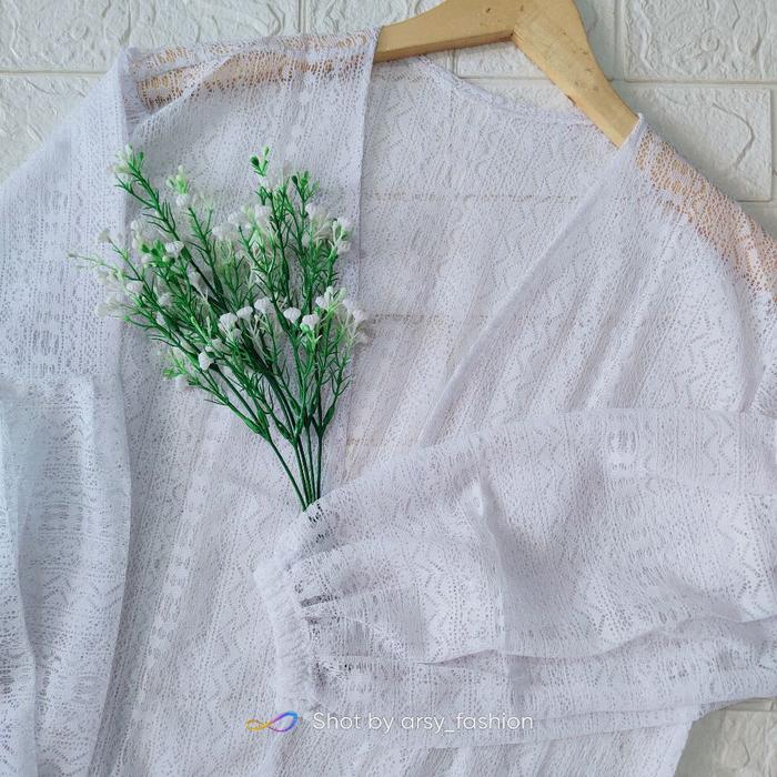Long Cardigan Brukat / Outer Panjang Selutut Kardigan Balon Muslim Wanita - Putih, All Size