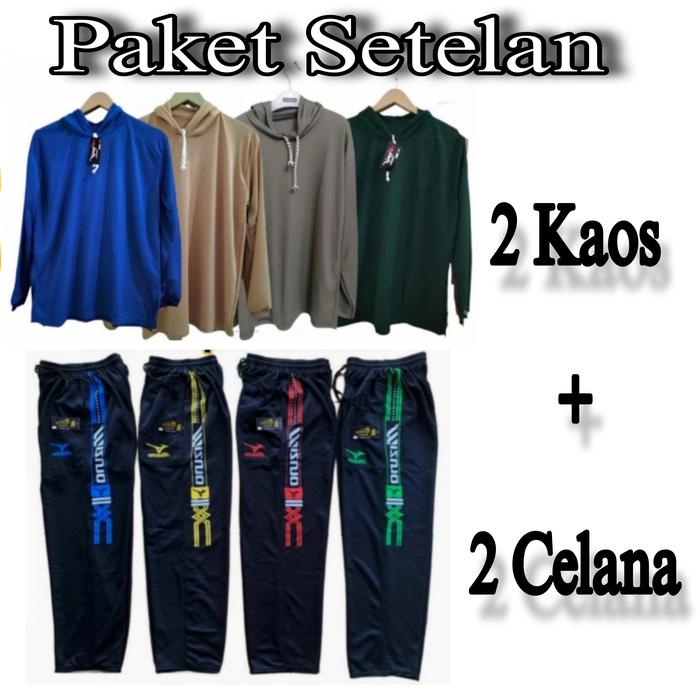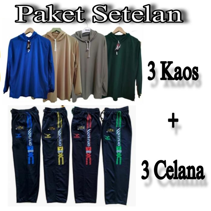 Paket Setelan 3 Kaos Lengan Panjang + 3 Celana Training Kaos Basahan Polos Kaos Ngarit Kaos Sawah Kaos Mancing Kaos Pro