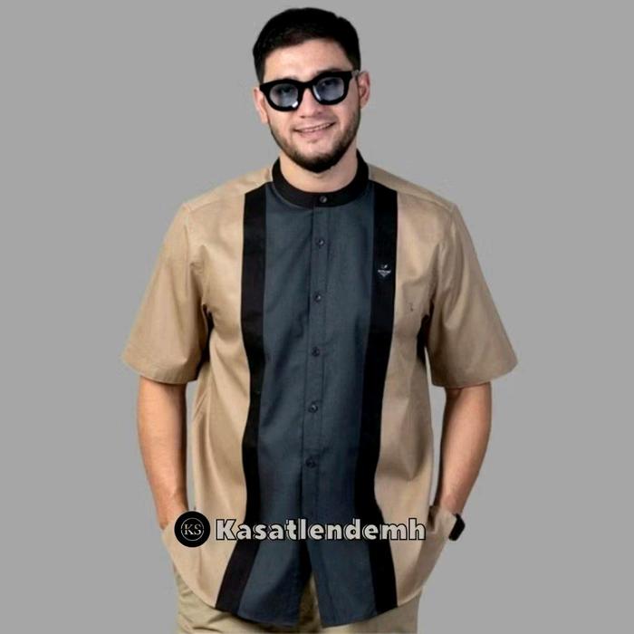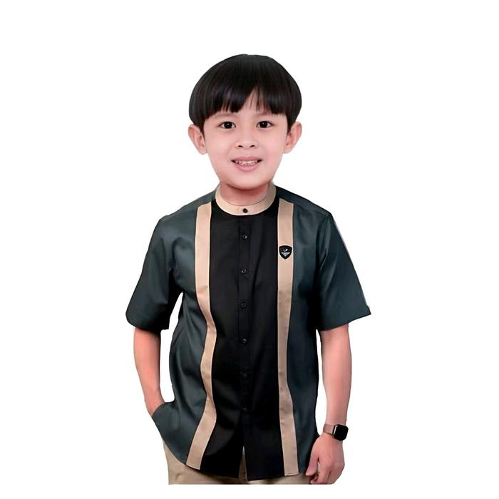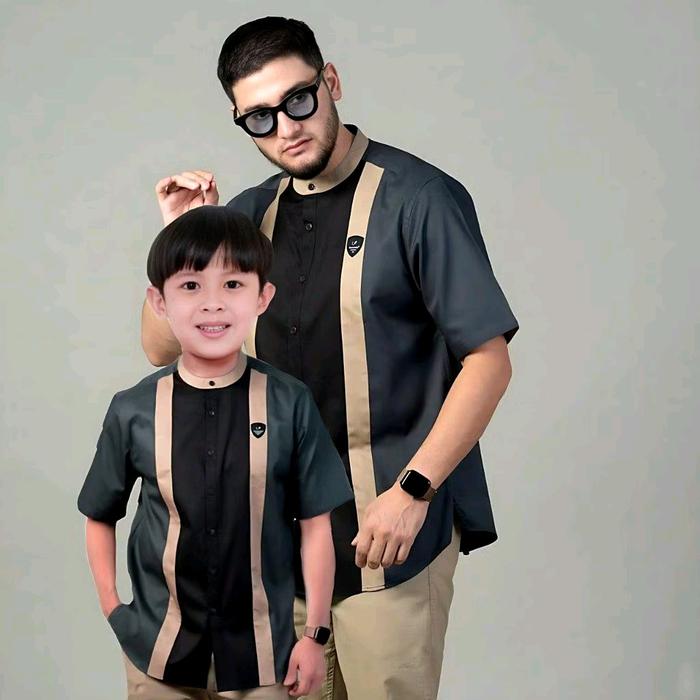 Baju Koko Couple Ayah Dan Anak Kombinasi 3 Warna Kemeja Kurta Kerah Mandarin Lengan Pendek Bahan Katun Premium - Bapak H
