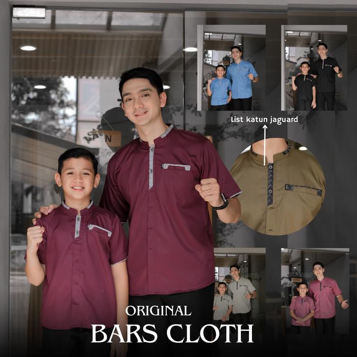Baju Koko Couple Ayah Anak Laki Laki Lengan Pendek Pria Merah Burgundy Kemeja Muslim Santri Keluarga Lebaran 2025 Bahan
