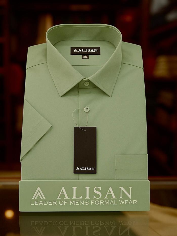 Alisan Kemeja Slim Fit Pria Lengan Pendek Hijau Sage Hitam Katun - Atasan Seragam Kantor Baju Formal Casual Kerah Keras