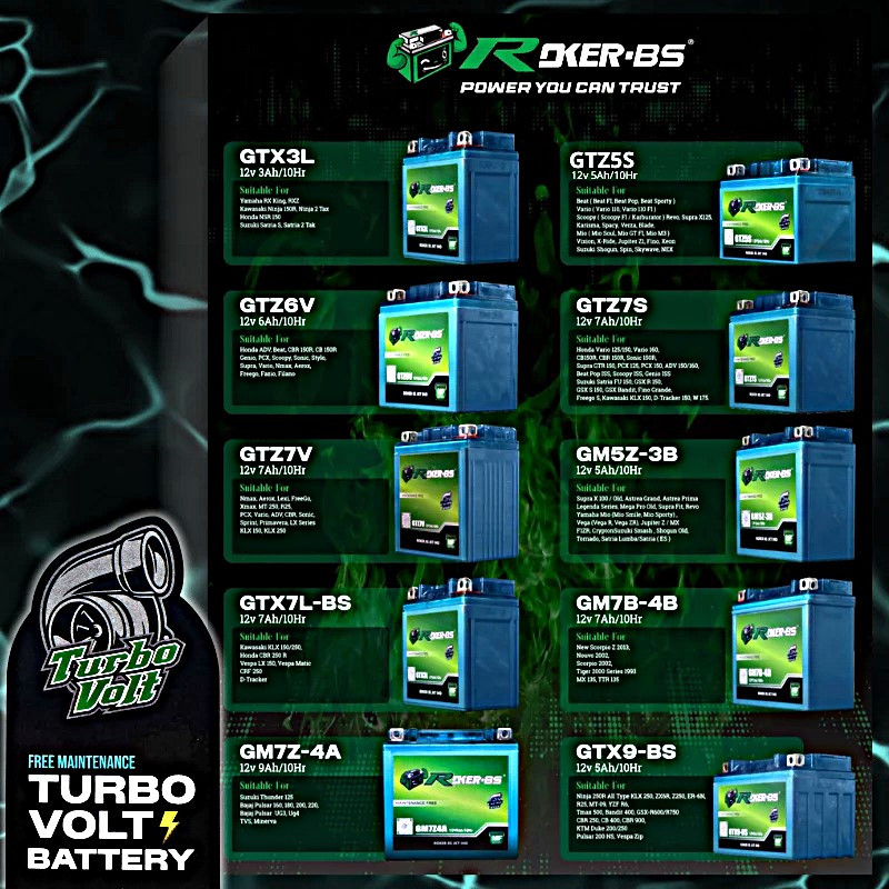 Aki Motor Turbo Volt Battery 12V, Aki Kering Turbo Volt 12v Roker Bs