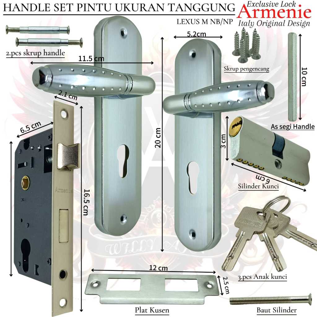 kunci pintu tanggung ARMENIE gagang bulat chrome | handle pintu 1 set | kunci set komplit 1set
