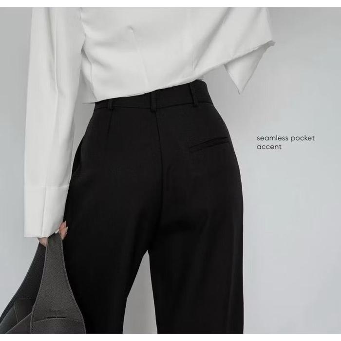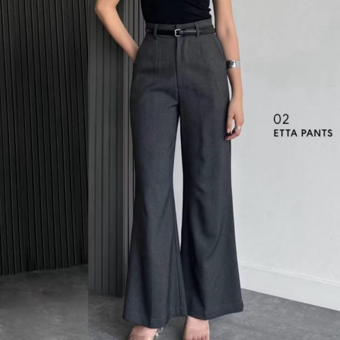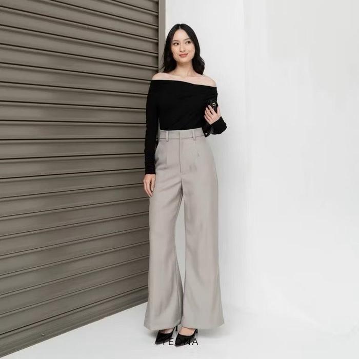 Ar Star - Etta Pants Highwaist Kulot Cutbray Semi Woll - Celana Kerja Wanita Loose Casual - Dark Grey, M