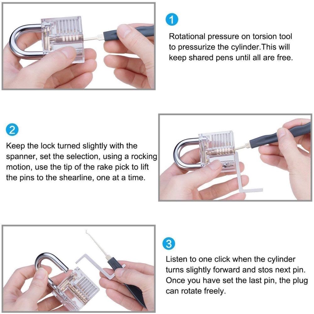 15pcs Set Alat Pembuka Kunci Gembok Pintu Darurat Locksmith Tools Lock Pick