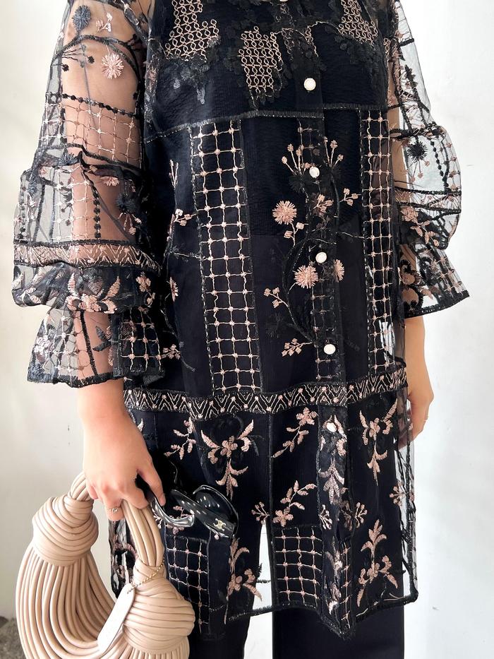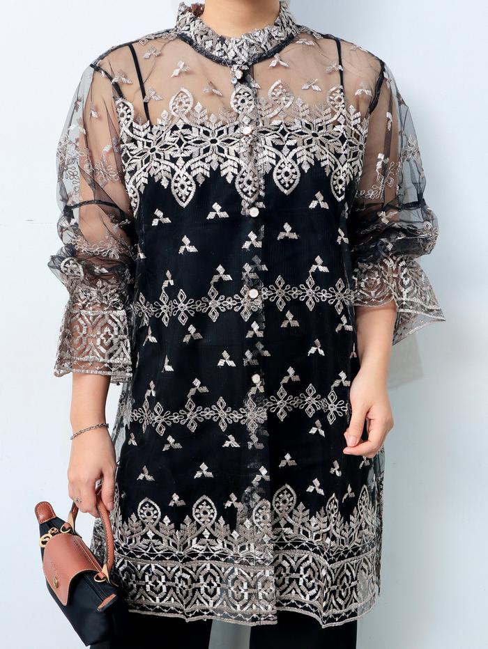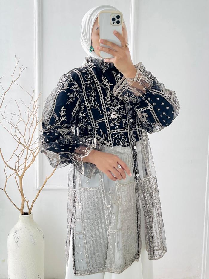 Outer Brukat Kekinian Kancing Haura - Atasan Panjang Mewah Muslim Wanita Baju Hitam Cardigan Kardigan - Burgundy Azura,