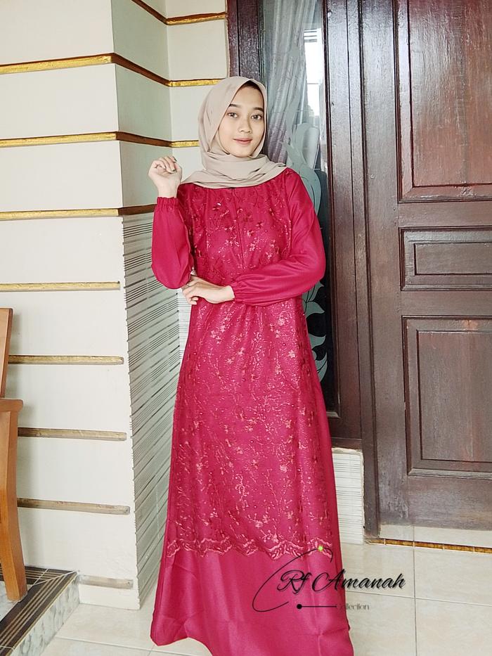 Gamis Brokat Tile Mutiara Pesta Elegan Gaun Kain Mewah Kondangan Muslim - Pink, M