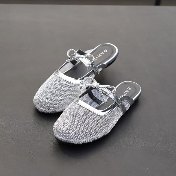 SAHIKU - Kiara Mesh Flat Mules Selop Balet Fishnet Sandal Coquette Jaring Net Korean Style Wanita