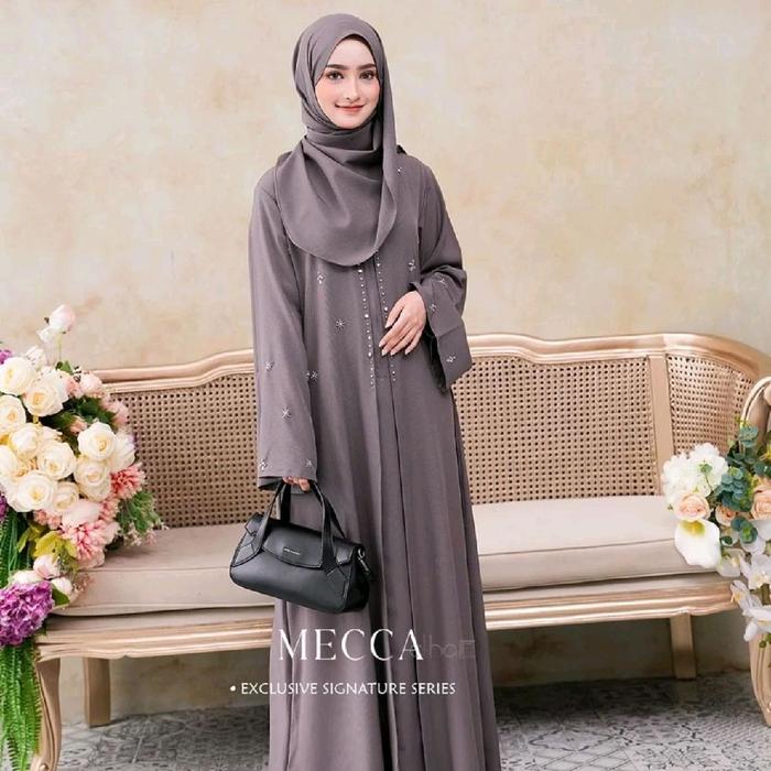 Gamis Wanita Mecca Dress Abaya Turkey Mahogany Ceruty Babydoll Mix Payet 2026-Muslim Lebaran Pesta Mewah Kondangan Arab