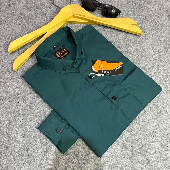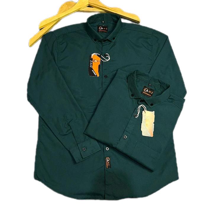 Zanz Kemeja Pria Warna Emerald Green Lengan Panjang & Pendek Bahan Katun Slim Fit Kerah Nyaman Untuk Acara Formal & Casu