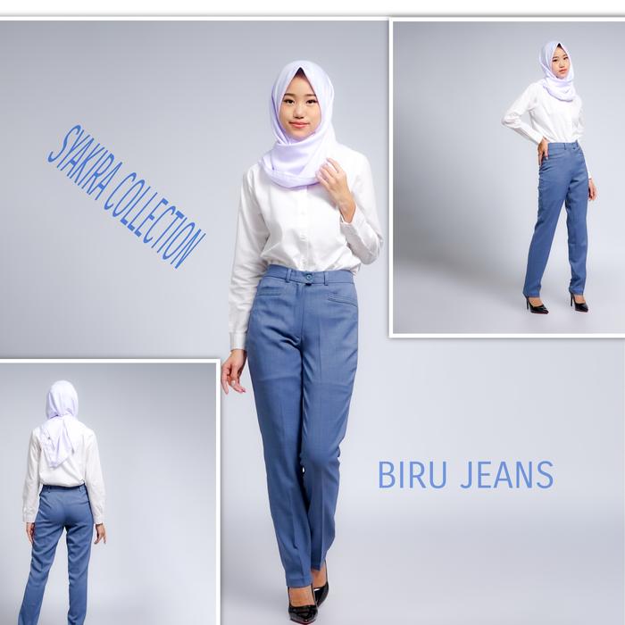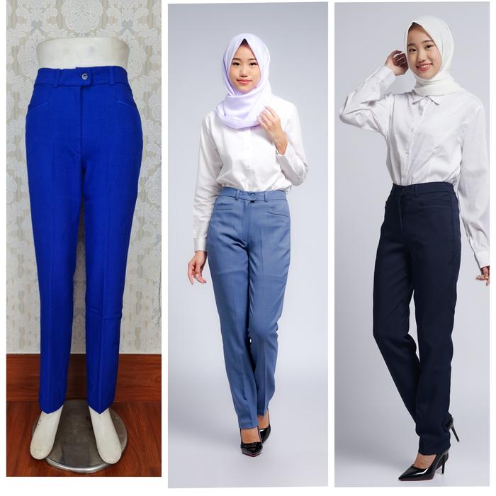 Celana Kerja Wanita/Celana Kantor Wanita/Celana Bahan Wanita Syakira - Biru Benhur, Xs