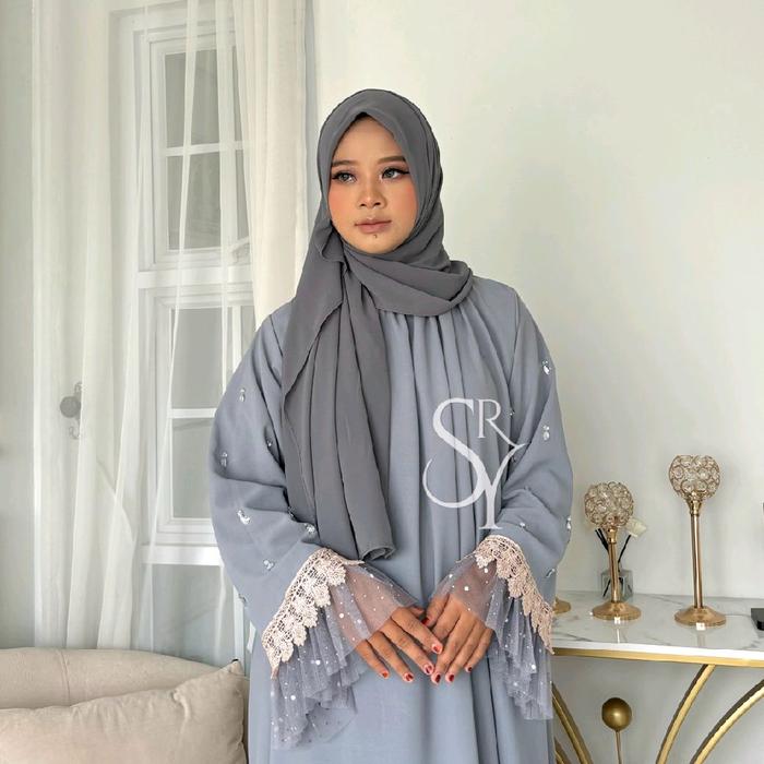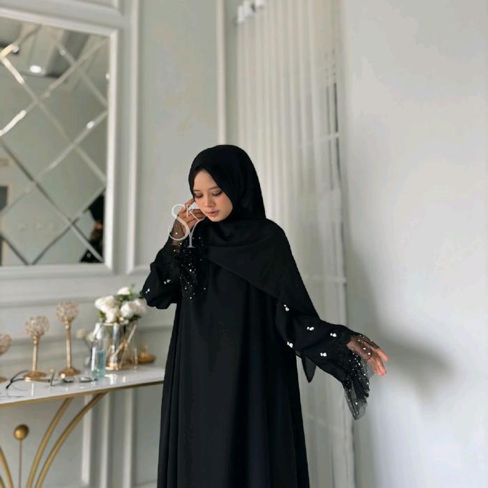 Alisa Abaya Hitam Mix Coksu - Abaya Muslim Syari Dengan Payet & Renda - Baju Mewah Dewasa Lembut - Ukuran M/L/Xl - Desai