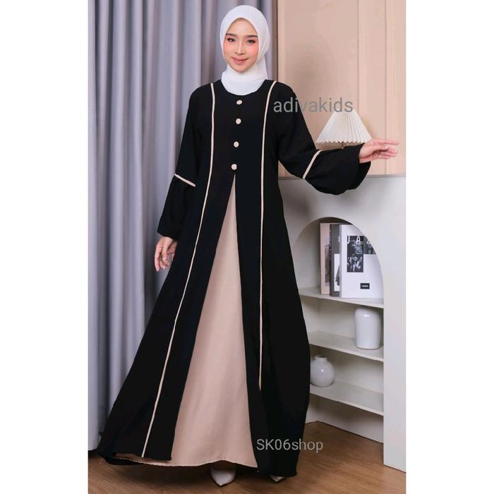 Abaya Zahira Terbaru/Abaya Ibu Dan Anak/Abaya Cringkle/ Abaya Kekinian Ibu Dan Anak Size S-M-L-Xl - Hitam Putih, S Ibu