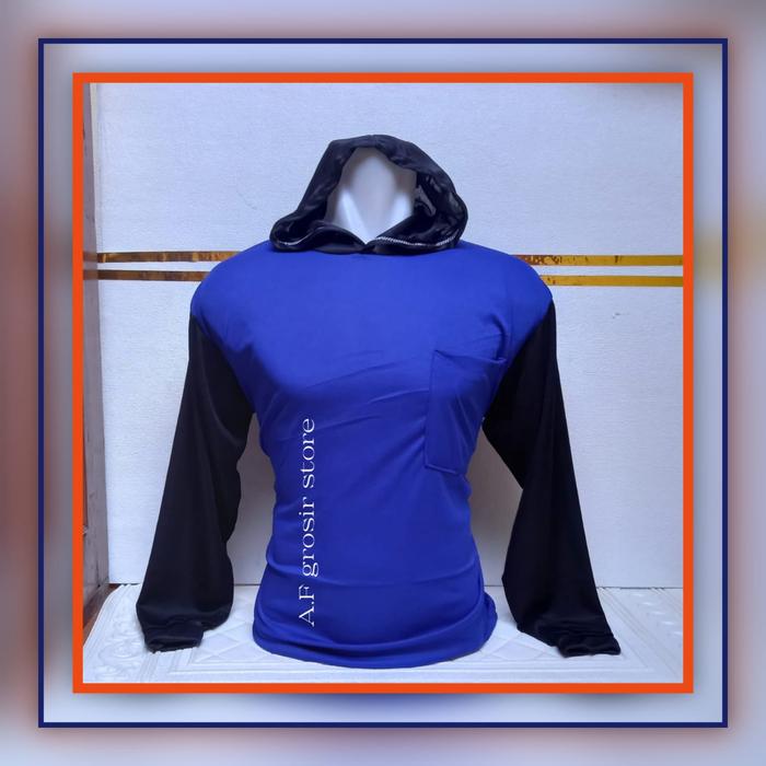 Kaos Basahan Pria Laki-Laki Kaos Lengan Panjang Polos Kerja Tani Sawah Kebun Kuli Bangunan Proyek - Biru Komb Hoodie, L
