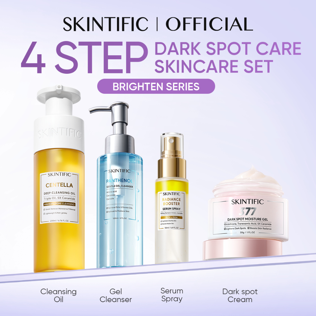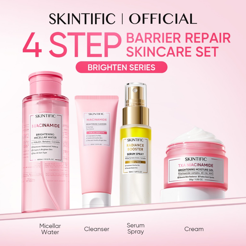 SKINTIFIC 4 PCS Brightening Repair Skincare Set Cleansing Oil Facial Wash Serum Cream Paket Skincare Skintific Wajah