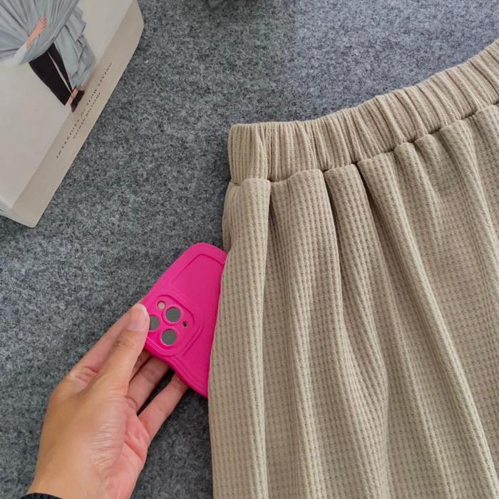 Hana Skirt | Rok Wanita Pinggang Karet | Rok Line A Bahan Knit Premium - Grey, Besar