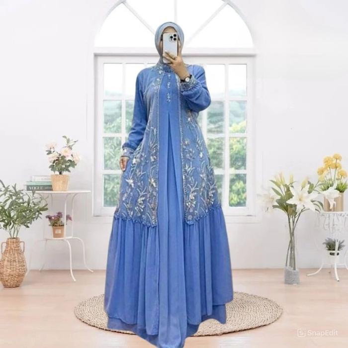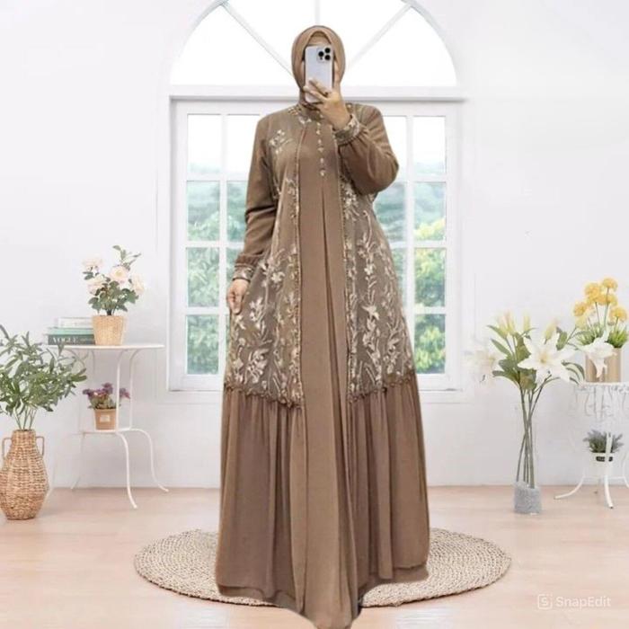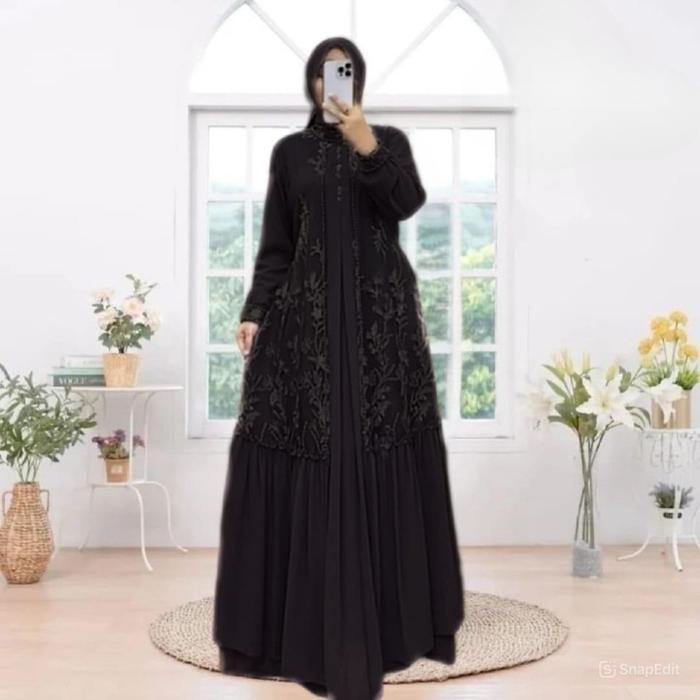 Nibarubusana Baju Gamis Raya Trend 2025 Dress Brokat Ceruty Babydoll Aplikasi Payet Mutiara Gaun Pesta Mewah Elegan Wani
