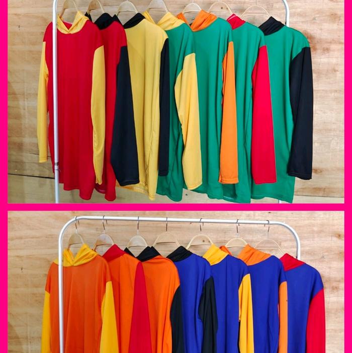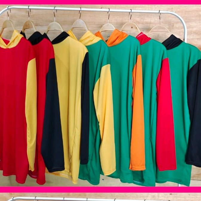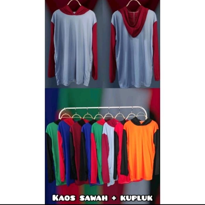 3 Pcs Kaos Basahan Tani Sawah Lengan Panjang Kupluk - Baju Kerja Proyek Warna Dikirim Random Polos